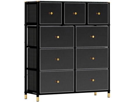 Cómoda com 9 Gavetas Couro PU, Aço, TNT e MDF cor Preto 88x30x103,5 cm HOMCOM
