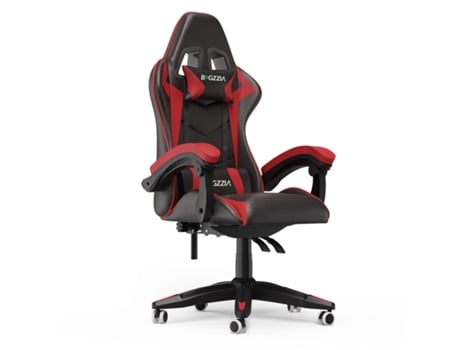 Cadeira Gaming Ergonómica BIGZZIA Modelo A (Até 110KG - Elevador a Gás Classe 2 - Couro PVC - Inclinação 90-155 graus - Preto vermelho)