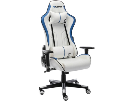 Cadeira Gaming S Edition Racing BERGNER Ergonómica, Reclinável, Ajustável em altura, Apoio lombar (Branco e Azul - Até 120 kg)