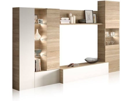 Conjunto de Móveis de TV HABITDESIGN Daisegno (Branco - Carvalho - Madeira - 260 x 185 x 42 cm)