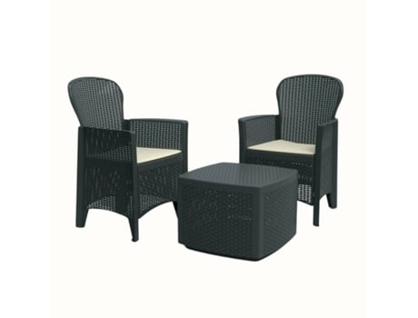 Conjunto de Jardim Tree Antracite IPAE PROGARDEN (2 Cadeirões + 1 Mesa de Apoio + 2 Almofadas)