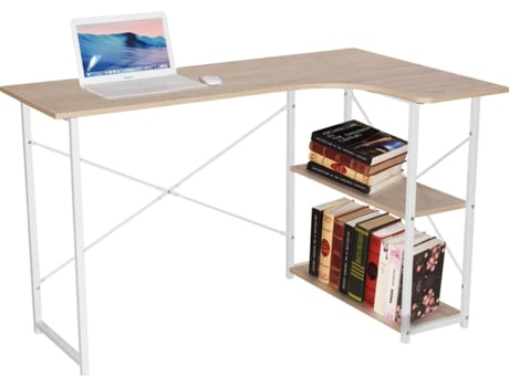 Secretária com Prateleiras MITSAI Odessa Castanho Claro e Branco (120x74x74 cm - Madeira e Metal)