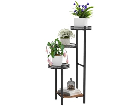 Suporte para Plantas Aço e Madeira cor Negro 25x25x80 cm OUTSUNNY